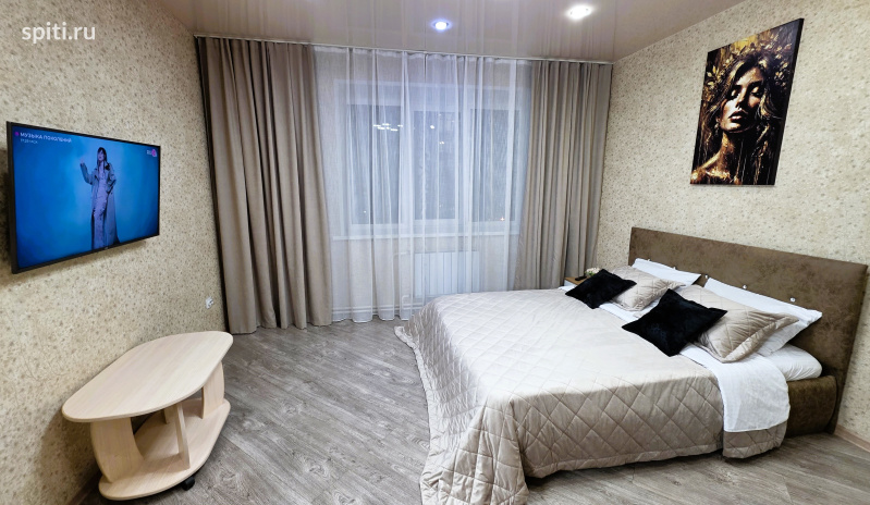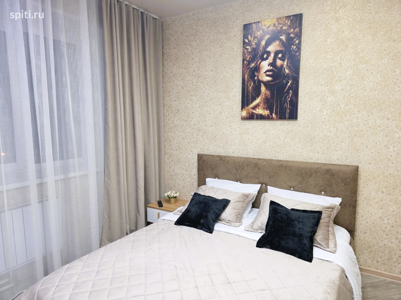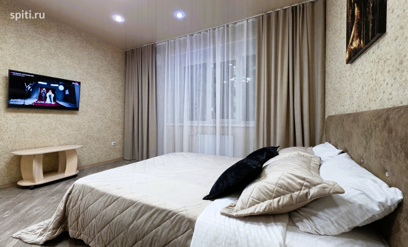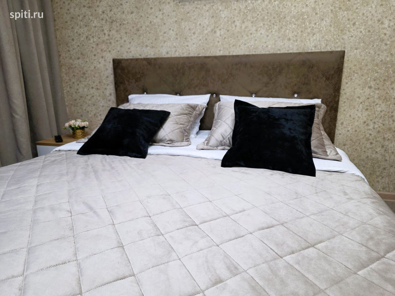 Уютные апартаменты в новом доме — идеальный вариант для краткосрочного проживания. Приглашаем вас остановиться в светлой и просторной однокомнатной квартире, расположенной в современном жилом комплексе в самом центре города. Здесь продумана каждая деталь для вашего комфортного отдыха или деловой поездки. Описание Представляем вашему вниманию комфортабельные апартаменты площадью 40 м² в современном жилом комплексе. Квартира выполнена в современном стиле с использованием качественных материалов. Эргономичная планировка и продуманное зонирование создают атмосферу домашнего уюта. Просторная спальня-гостиная, два санузла, уютная кухня. Вместимость: до 5 человек (есть двуспальная кровать и два диванчика). Особенности квартиры • просторная планировка с грамотно организованным пространством. • новый ремонт с использованием современных отделочных материалов. • качественная мебель и бытовая техника премиум-класса. • два больших окна, одно из которых с выходом на просторную лоджию и видом на город. • два санузла с современной сантехникой. Удобства, интерьер и оснащение • двуспальная кровать с ортопедическим матрасом. • прикроватная тумба. • вместительный шкаф для хранения вещей. • мягкое освещение. • плотные шторы, обеспечивающие полноценный отдых. • кухня полностью оборудована: холодильник, плита, микроволновая печь, чайник. • набор посуды и столовых приборов на несколько персон. • удобный раскладывающийся диван. • бытовая техника: два LED-телевизора с доступом к более 150 каналов., высокоскоростной Wi-Fi, кондиционер. • ванная комната: большая джакузи, душ, фен, стиральная машина, комплект полотенец, туалетные принадлежности, шампунь, гель для душа, мыло, маска для лица, ватные палочки и диски, дезодоранты, утюг, гладильная доска. Дополнительные преимущества • круглосуточное видеонаблюдение на всех этажах, в лифте, а также по периметру дома, где расположена квартира. • большой паркинг для вашего автомобиля около дома. • современная детская площадка во дворе.